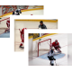 Dominik Hasek watches the puck, looking around Los Angeles King Alexander Frolov stationed at the edge of the crease.