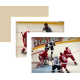 Dominik Hasek guards the near post as Nicklas Lidstrom poke-check's LA's Derek Armstrong at the side of the net. Danny Markov guards Alexander Frolov at the top of the crease.
