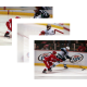 Brian Rafalski fires a shot on Vancouver's Roberto Luongo with Drew Miller screening, while former Red Wing Mathieu Schneider and Jannik Hansen defend.