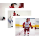 Jonathan Ericsson, Danny Cleary, Mike Modano, Tomas Tatar, and Ruslan Salei stand with two youth hockey players for the singing of The Star-Spangled Banner before a preseason game.