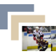 Riley Sheahan of the Griffins skates up the boards alongside Jordan Schroeder of the Wolves in a game between Grand Rapids and Chicago.