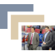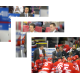 Assistant coaches Jim Hiller and Andrew Brewer stand at the Red Wings' bench during pre-game warmups.