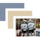 Patrick Sharp and Jason Spezza of the Dallas Stars stand at the boards during pre-game warmups before a game against the Detroit Red Wings.