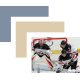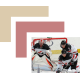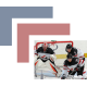 Carter Hart, Logan Stanley, and Robert Thomas of Team Canada get set for a faceoff during a game against Team USA at the 2017 World Junior Summer Showcase.