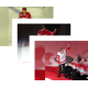 Detroit Red Wings greats Mickey Redmond and Nicklas Lidstrom walk off the ice after participating in a ceremonial faceoff.