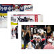 Klim Kostin of the San Antonio Rampage jumps in on a faceoff while being defended by Matt Ford and Dylan McIlrath of the Grand Rapids Griffins.