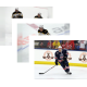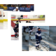 Charlie McAvoy of Team Blue carries the puck through center ice during the 2018 Stars & Stripes Showdown. Teammates Dylan Larkin and Quinn Hughes join him on the rush while Auston Matthews of Team White defends.