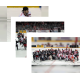 Stefan Noesen and Jake McCabe of Team White shake hands with Kevin Porter Jimmy Howard, Drew Stafford, and Andrew Copp of Team Blue after the 2018 Stars & Stripes Showdown.