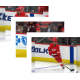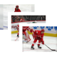 Patrik Nemeth skates along the blue line behind Taro Hirose and Filip Hronek, all of the Detroit Red Wings, during pre-game warmups before a game against the Dallas Stars.
