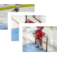 Alex Nedeljkovic and Danny DeKeyser of the Detroit Red Wings get set for a faceoff during a game against the Tampa Bay Lightning.