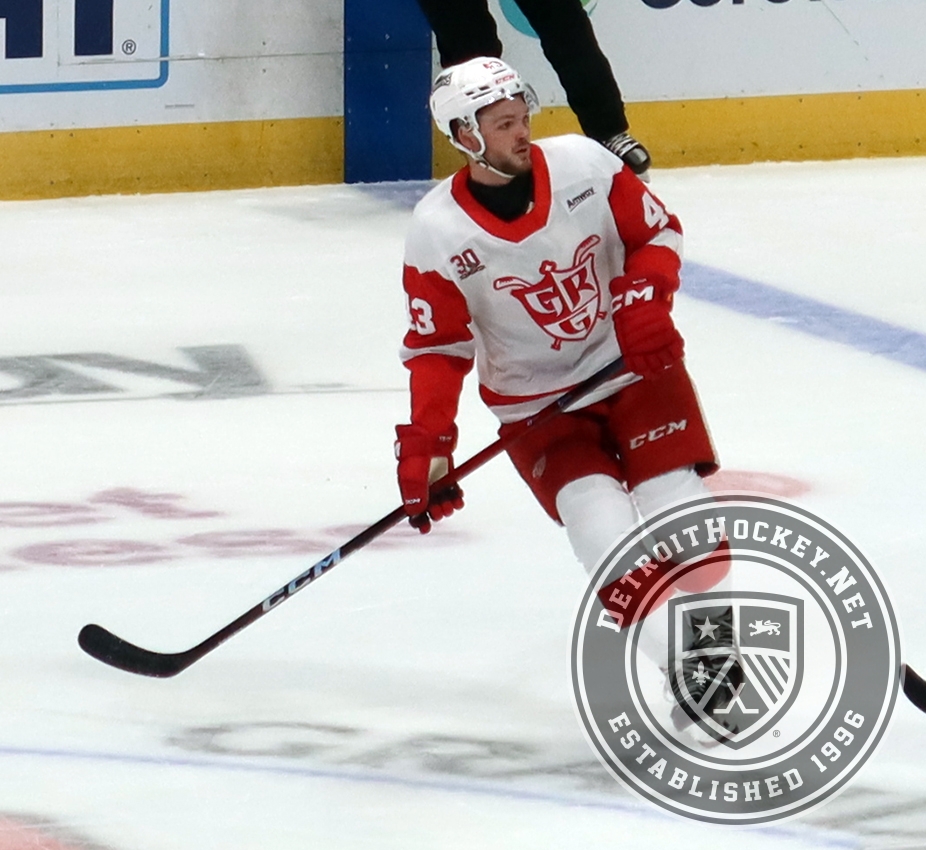 Carter Mazur of the Grand Rapids Griffins skates during a game against the Manitoba Moose.