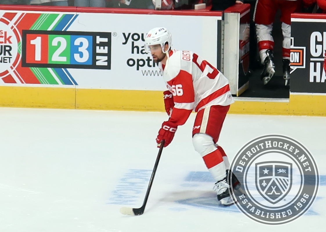Erik Gustafsson of the Grand Rapids Griffins skates during pre-game warmups before a game against the Manitoba Moose.