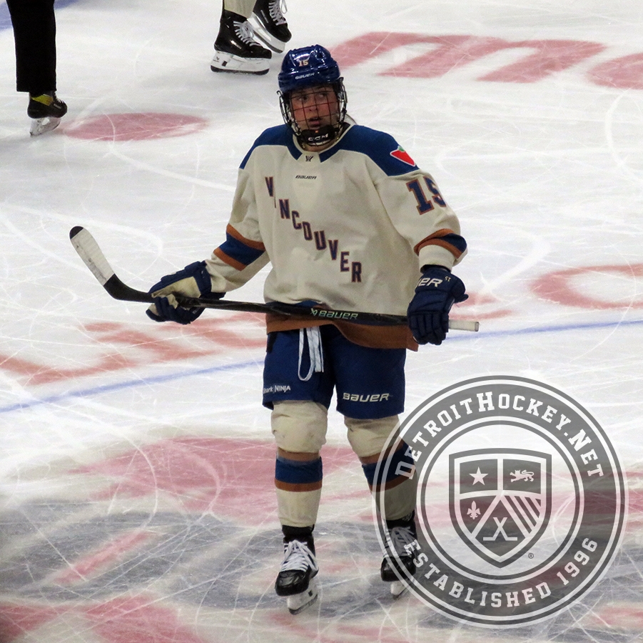 Gabby Rosenthal of the Vancouver Goldeneyes skates to the penalty box during the PWHL Takeover Tour Detroit game against the Boston Fleet.