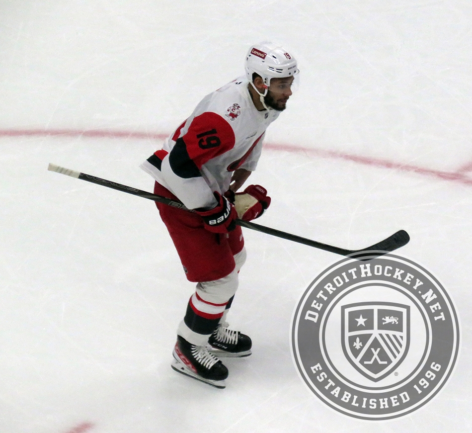 K'Andre Miller of the Carolina Hurricanes skates during a game against the Detroit Red Wings.