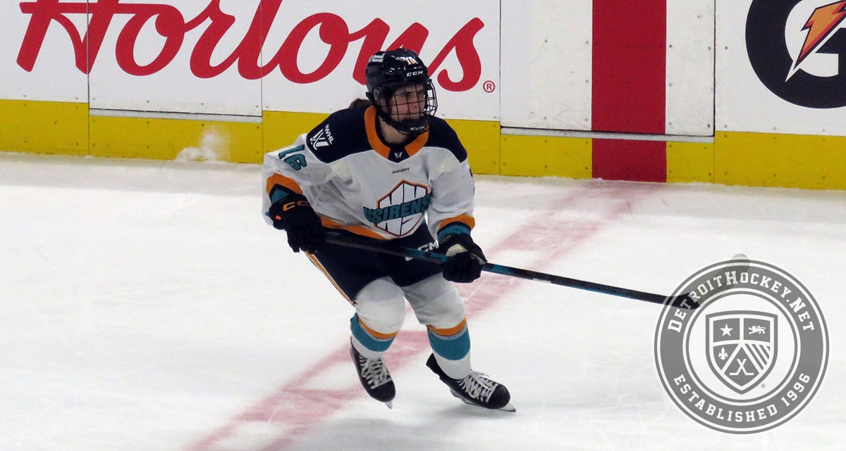 Lauren Bernard of the New York Sirens skates during the PWHL Takeover Tour Detroit game against the Montreal Victoire.