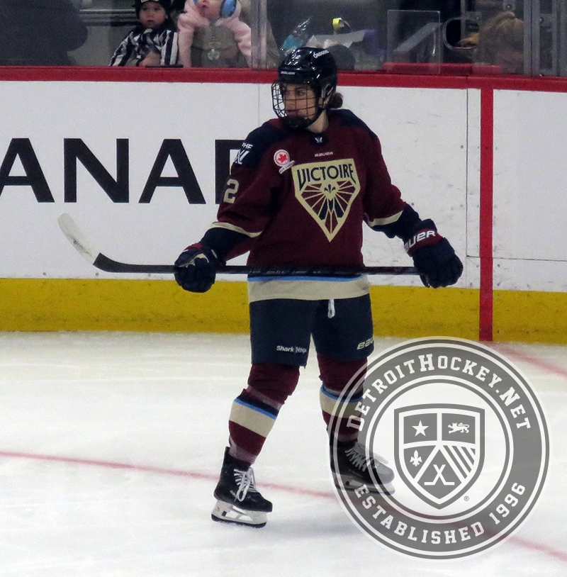 Tamara Giaquinto of the Montreal Victoire skates during a stop in play during the PWHL Takeover Tour Detroit game against the New York Sirens.