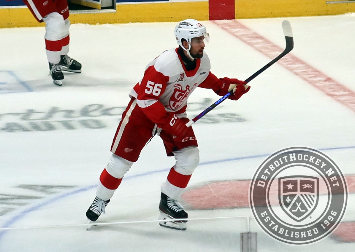 Carter Mazur of the Grand Rapids Griffins skates during a game against the Manitoba Moose.